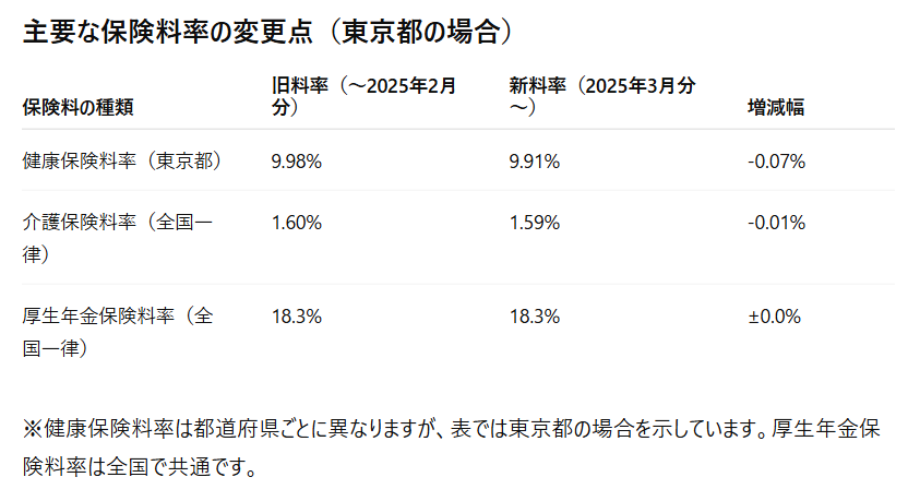 2025年(令和7年)3月分より、健康保険料・介護保険料・厚生年金保険料の料率が変更となります。本記事では、中小企業の社長や給与担当者の方向けに、令和7年2月分までの保険料と比較しながら主な変更点をわかりやすく解説します。地域によって保険料率が異なる健康保険料については東京都の料率を例に説明し、また令和7年3月分の保険料率が給与計算に反映される時期(通常は4月支給の給与から適用)についても解説します。